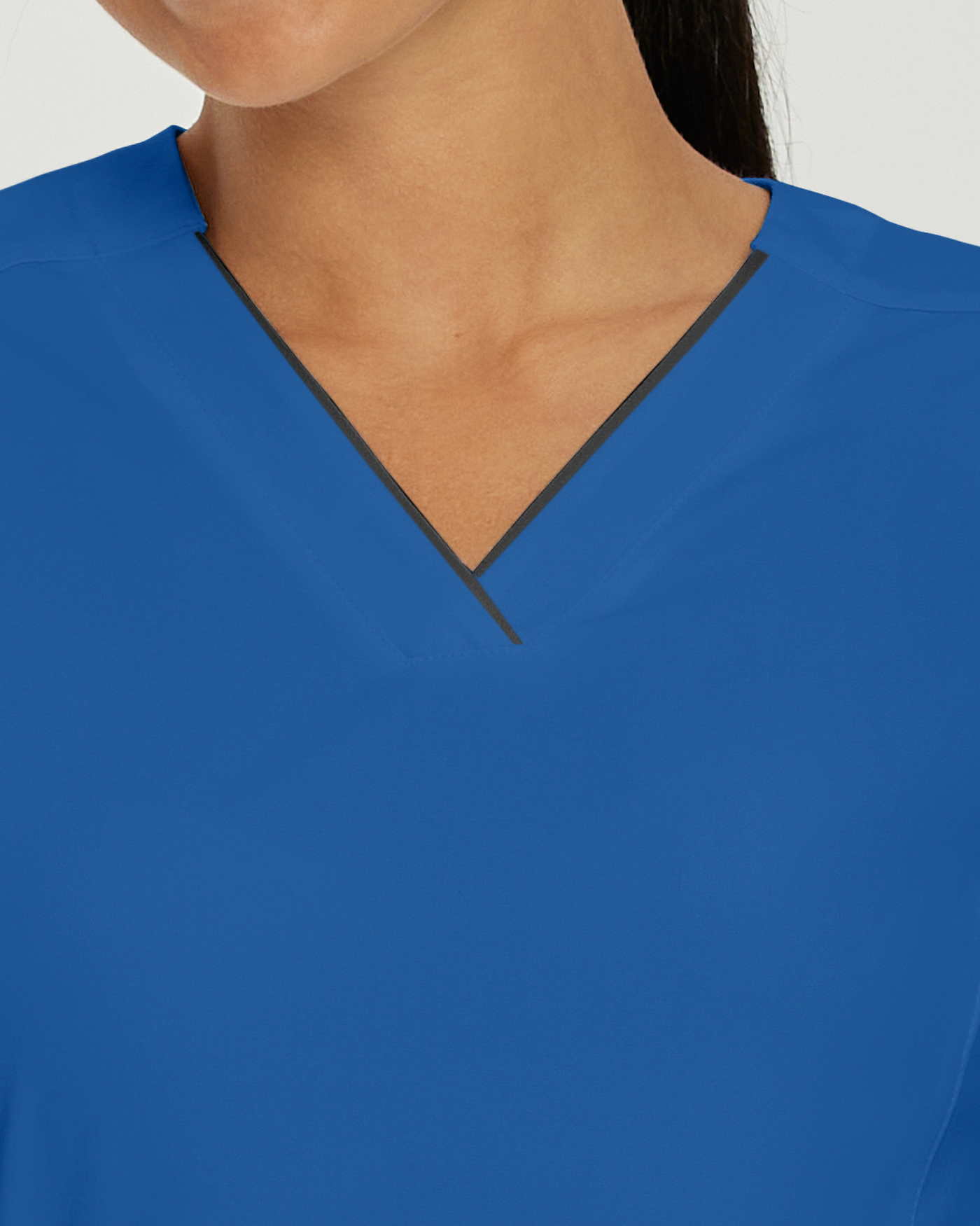 Notre haut d’uniforme à 3 poches et encolure en V laisse une sensation de douceur sur la peau. Son tissu extensible, respirant et infroissable est très apprécié. Ce haut chiné est doté de pinces au dos pour compléter votre silhouette, en plus de pinces au dos flatteuses et de coutures princesse. Offrez-vous le luxe du confort absolu !