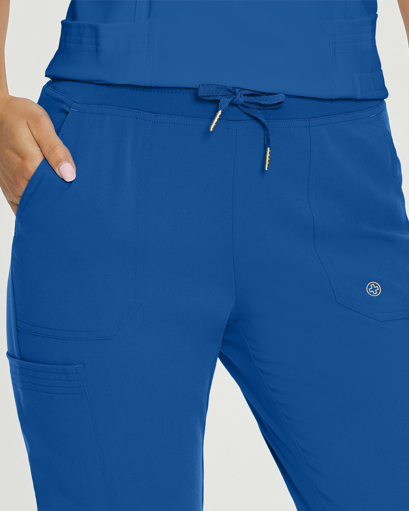 The Marvella women's banded-bottom jogger scrub pants are made of fabric that will both flatter your body and feel luxurious on your skin. The breathable, wrinkle-resistant material provides unmatched luxury and sophistication with a subtle 2-way stretch for added comfort and mobility while you work. Our Marvella Women's Banded-Bottom Jogger Scrub Pants have an athletic-inspired design with rib-knit stretchy leg cuffs, a mid-rise triple-elastic waist with a drawstring for a secure fit, and are fade-resistant, wrinkle-resistant and breathable with a 2-way stretch.